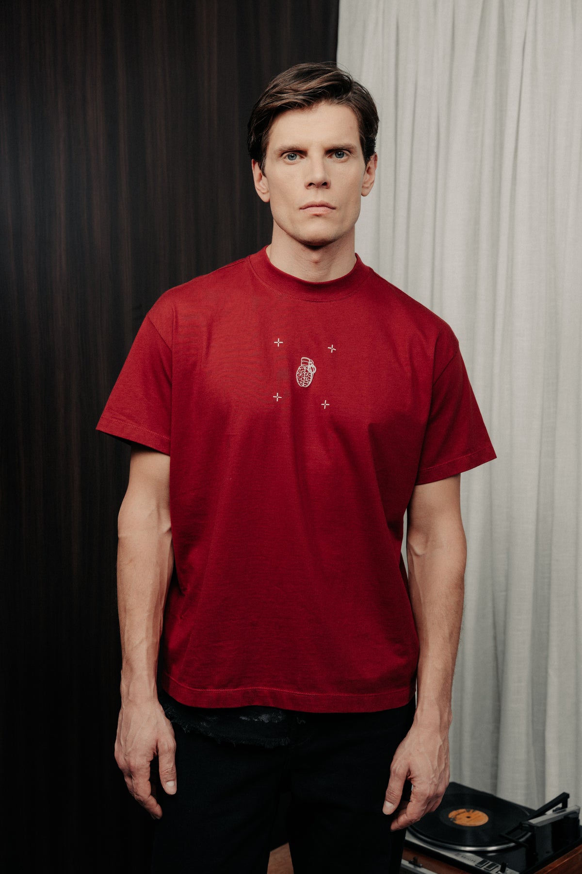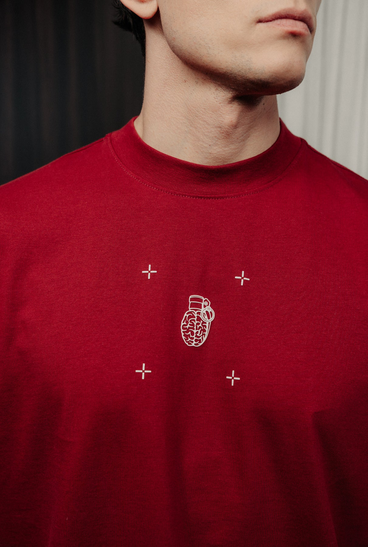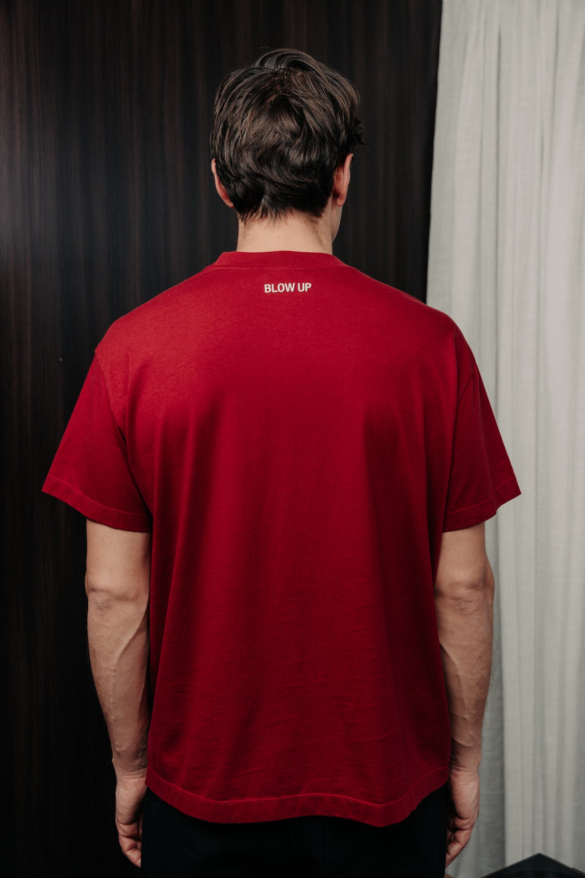 T-shirt blow up color vino tinto fabricada en 100% algodón peruano. prenda de líneas limpias y textura suave.