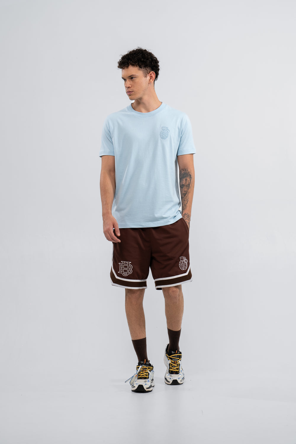 Camiseta slim fit en color azul con ajuste preciso en torso y mangas. Cuello redondo en rib acanalado, logo de granada Blow Up en relieve en punto corazón y estampado en contraste en la espalda.